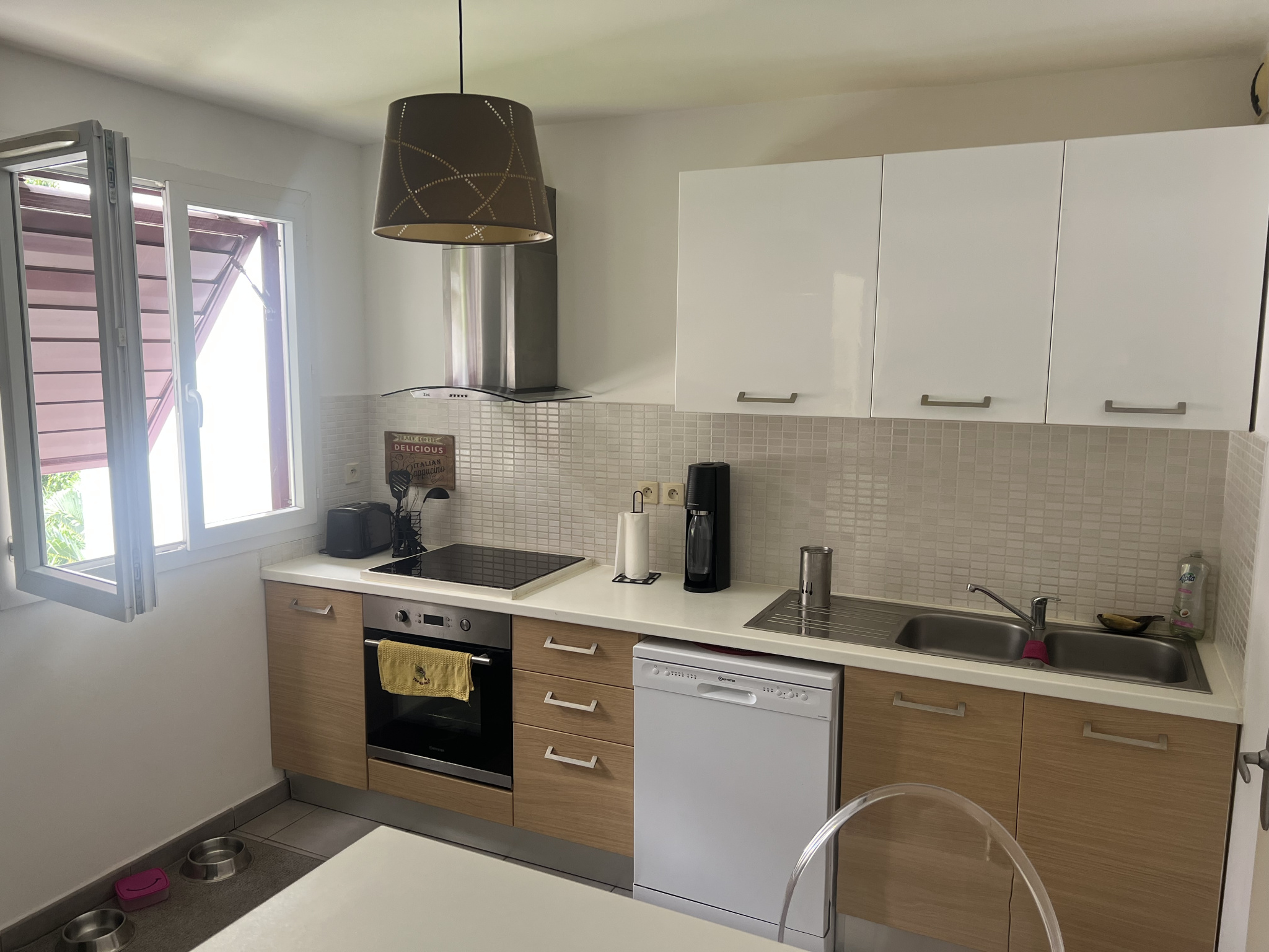Une entrée, Un séjour, Une cuisine équipée, 1 cellier, 2 Chambres, Un dégagement, Une SDB, Un WC, Une varangue et 1 Pk intérieur sécurisé.